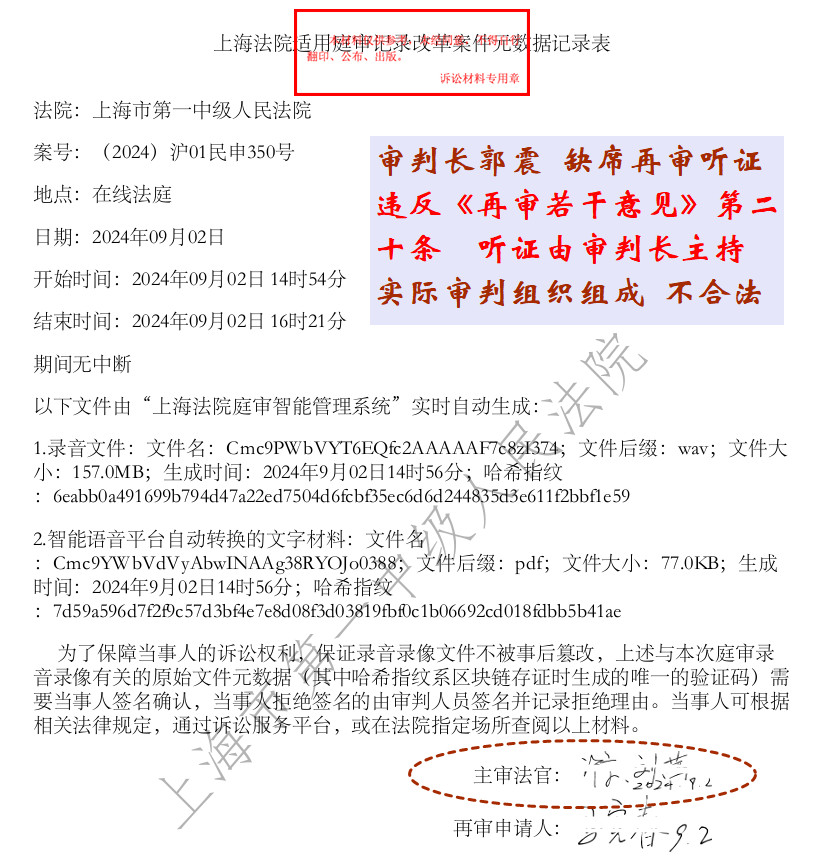 举报:上海市第一中级人民法院再审审判长郭震
